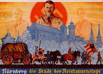 Negli anni che precedettero la sua nomina a cancelliere del Reich, Adolf Hitler utilizzò sempre con maggior frequenza Goebbels nell’opera di persuasione delle masse e per riportare la Germania, umiliata dalle potenze vincitrici, ai fasti di un tempo. Nominato capo dell’ufficio della propaganda nel 1929, Goebbels concentrò nelle sue mani un potere smisurato, avente l’assoluto controllo su cinema, musica, stampa, teatro, radio, arte e televisione. La radio, più di ogni altro mezzo, assunse un ruolo di primo piano. I programmi trasmessi, in cui erano simultaneamente presenti svago ed informazioni al fine di aumentare il numero degli ascoltatori, erano costituiti per lo più da discorsi del Führer, marce ufficiali o conversazioni sul razzismo. La radio diventava così la voce ufficiale dello stato. La propaganda nazista produsse documentari e film volti ad affermare le dottrine codificate nel Mein Kampf e dunque a persuadere i tedeschi circa la necessità di eliminare quelle che venivano considerate le razze etnicamente inferiori, ad inculcare la più totale devozione e fiducia nel proprio Führer e ad affermare la grandezza di un Reich che sarebbe durato almeno 1000 anni. Il Reich era come un'esposizione permanente dell' hitlerismo e, quando per qualche speciale avvenimento conveniva incitare le masse, le vetrine esibivano, tra ghirlande di fiori, migliaia di ritratti del Führer. Tutto ciò che si vedeva e che si udiva non era altro che un riflesso della presenza nazista. Così il popolo tedesco, materialmente schiacciato dal peso di una propaganda che lo perseguitava in ogni angolo di strada, in ogni giornale, in ogni altoparlante, finì per cedere. |